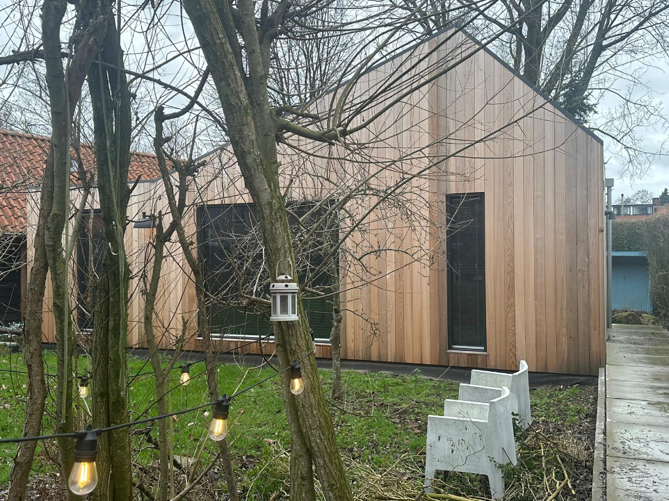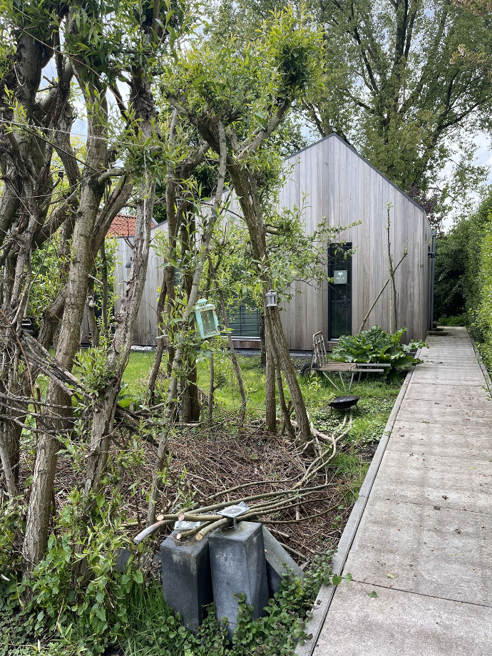 Het verblijf ligt gezellig achterin de tuin, op ongeveer 40 meter van de straat.